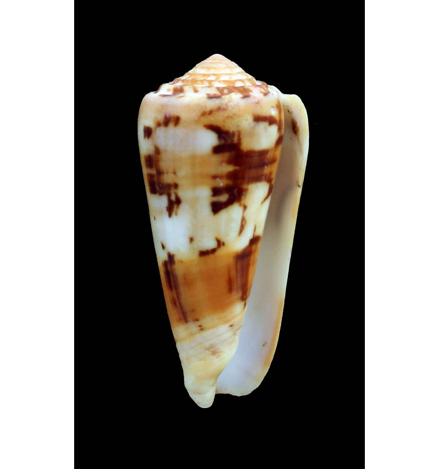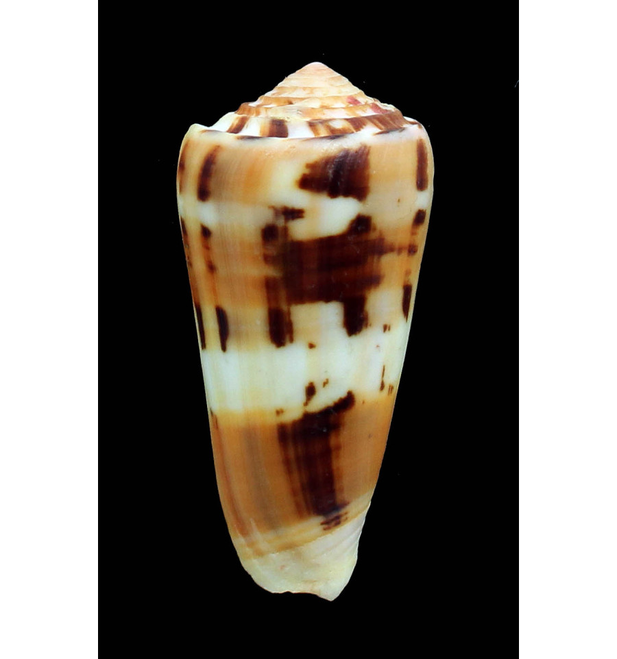 Great specimen, fresh dead taken, superb pattern, with dark brown blotches, dar orange color, natural lip, dived -50m South Natal. Ex French Collection