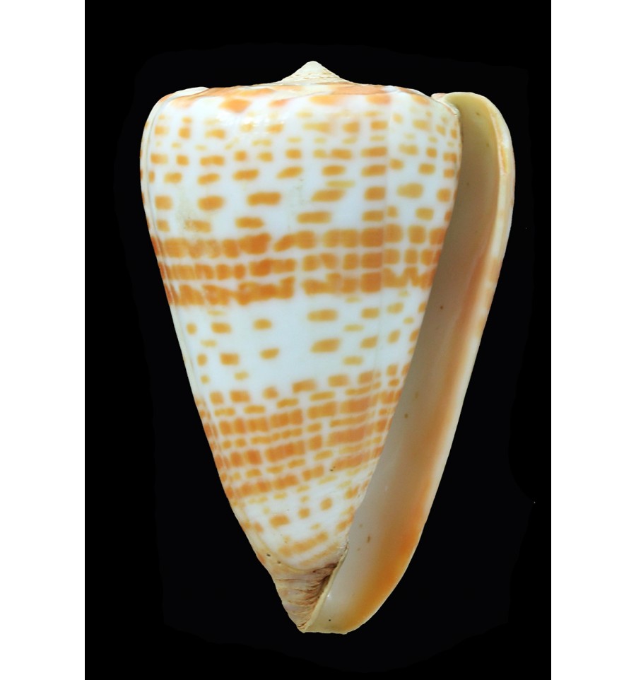 Impressive specimen, gerontic and heavy, very nice orange pattern with bands, a chip on the top lip, dived Tulear